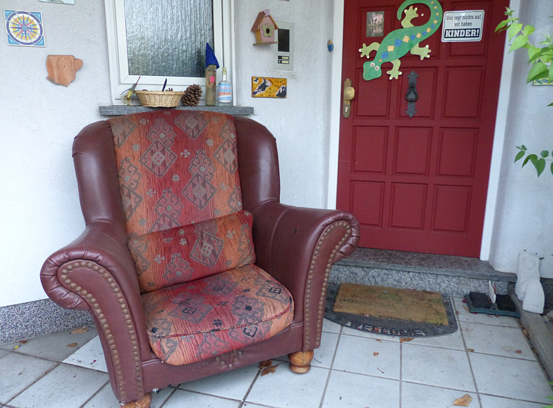 ... denn da steht ein Sessel vor einer Haustüre ...