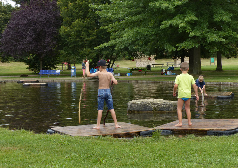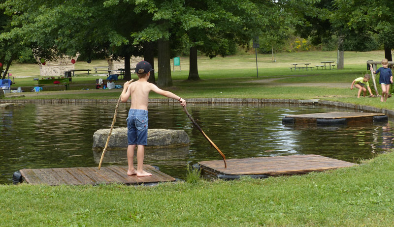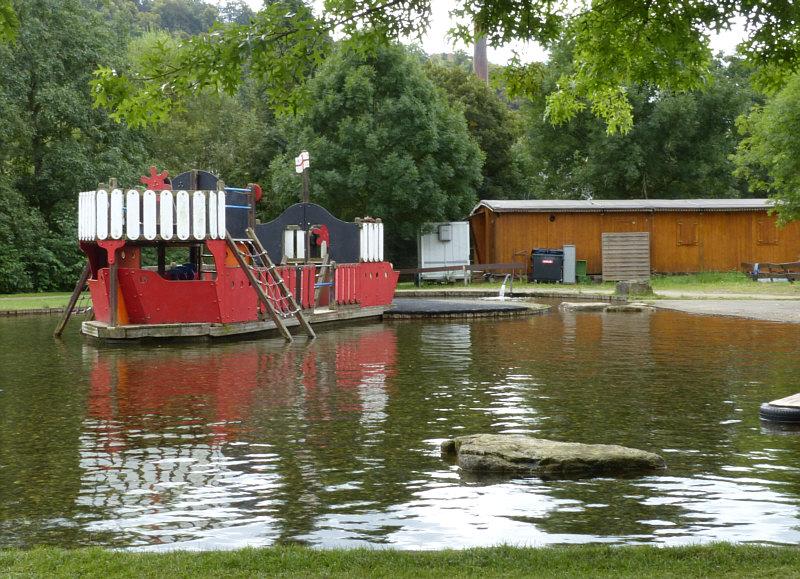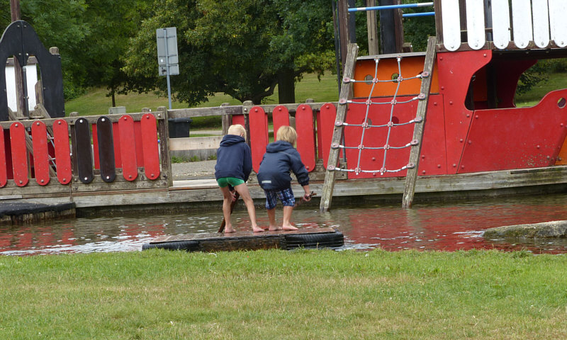 Der September schenkt uns noch ein bisschen Sommergefühl ... ... das freut die Erwachsenen und auch die Kinder. Denn dann können sie nochmal Kapitän spielen, z.B. auf diesem tollen Schiff: Da könnte man fast neidisch werden ... sowas tolles. Gabs in meiner Kindheit nicht ... müsste es aber in jedem Ort geben. Ist ja nicht nur das Schiff zum Klettern und Kapitän spielen ... nein ... ... es gibt auch noch diese kleinen "Boote": Welch tolle Möglichkeiten ... das Wasser ist ganz flach und die Kinder können ... ... mit Stöcken auf den Holzquadraten übern See fahren. Das macht richtig Spaß, zuzuschauen ... danke an die Stadtväter, die das hier auf diese Weise möglich gemacht haben.