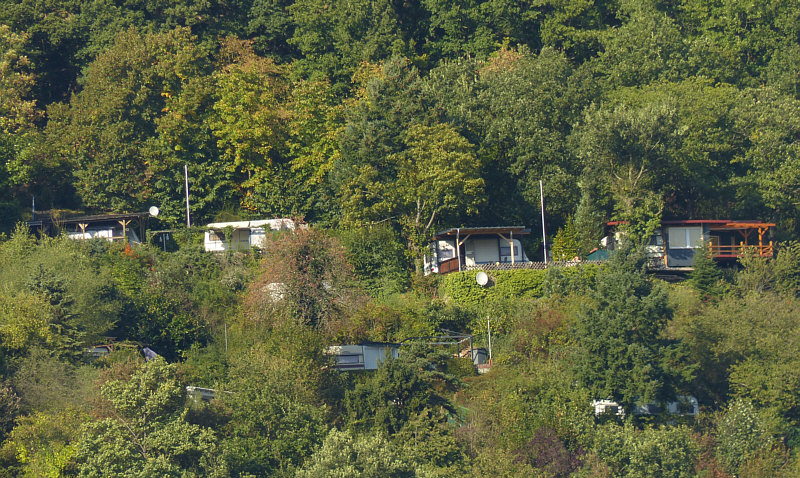 ... da stehen Häuser oder Wohnwägen oder so ähnlich.