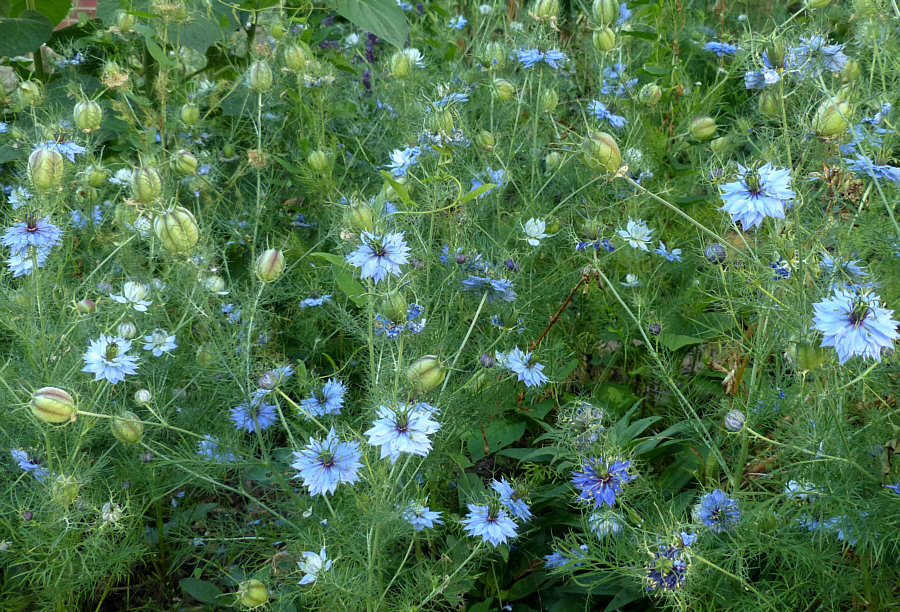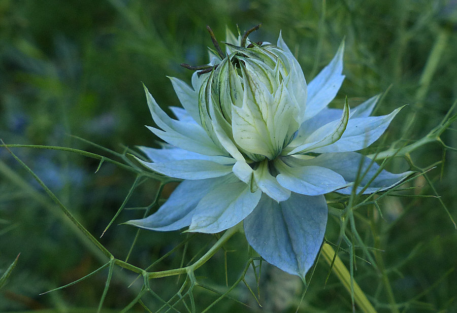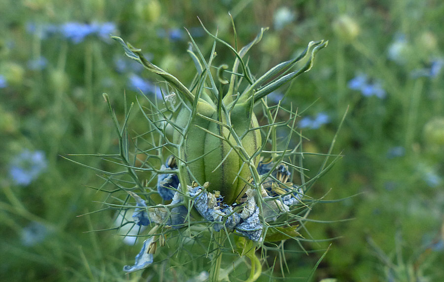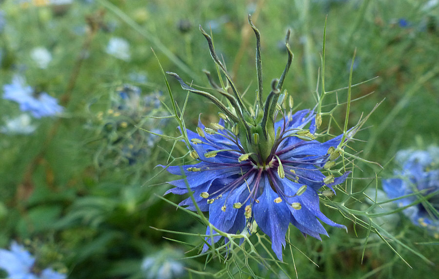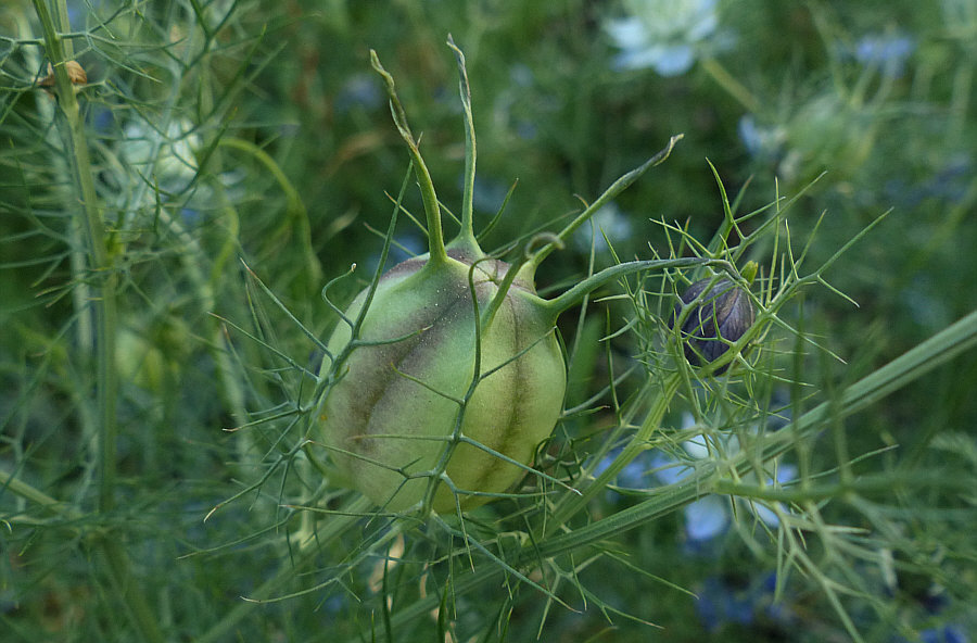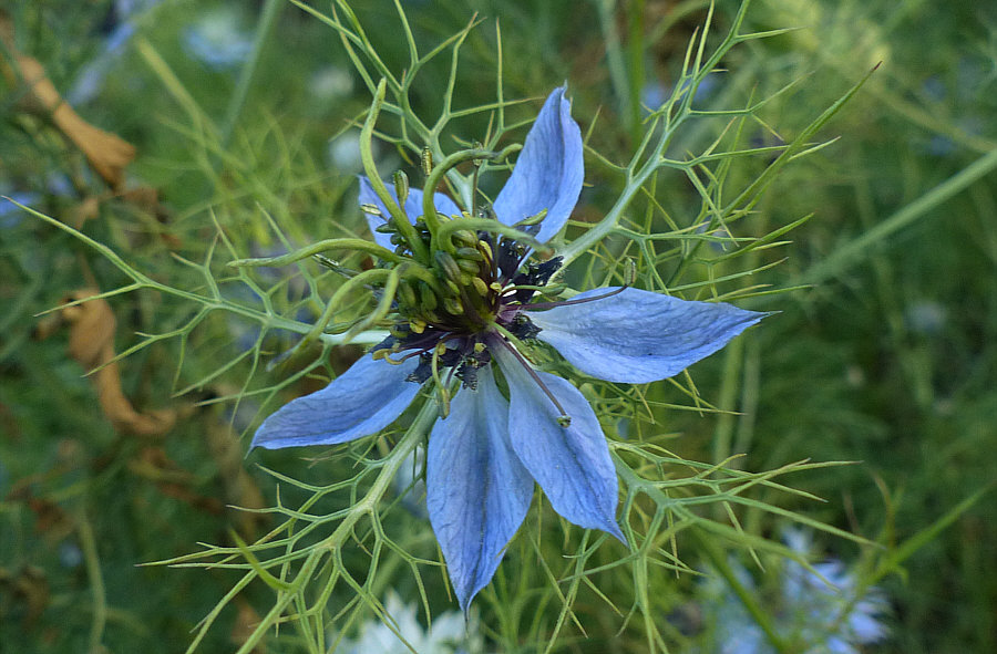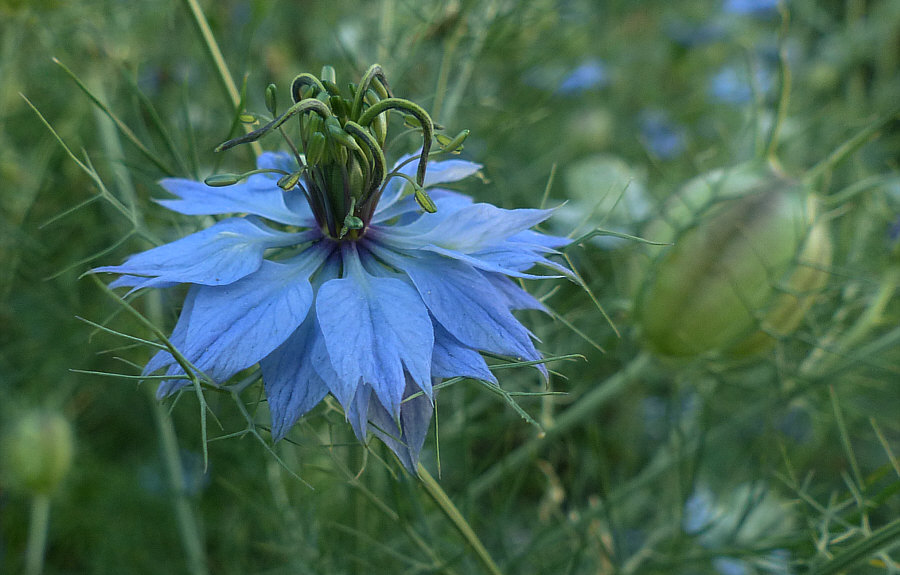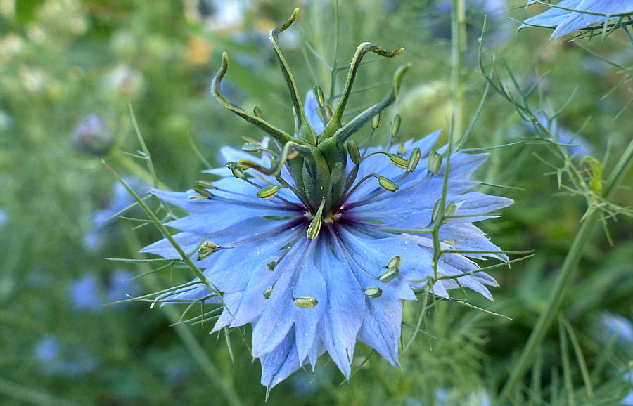 Jungfer im Grünen Andere Namen: Gretl in der Stauden, Gretchen im Busch, Venushaarige, Braut in Haaren, Damaszener Schwarzkümmel, Damaszener Kümmel und Garten-Schwarzkümmel