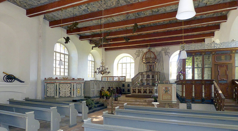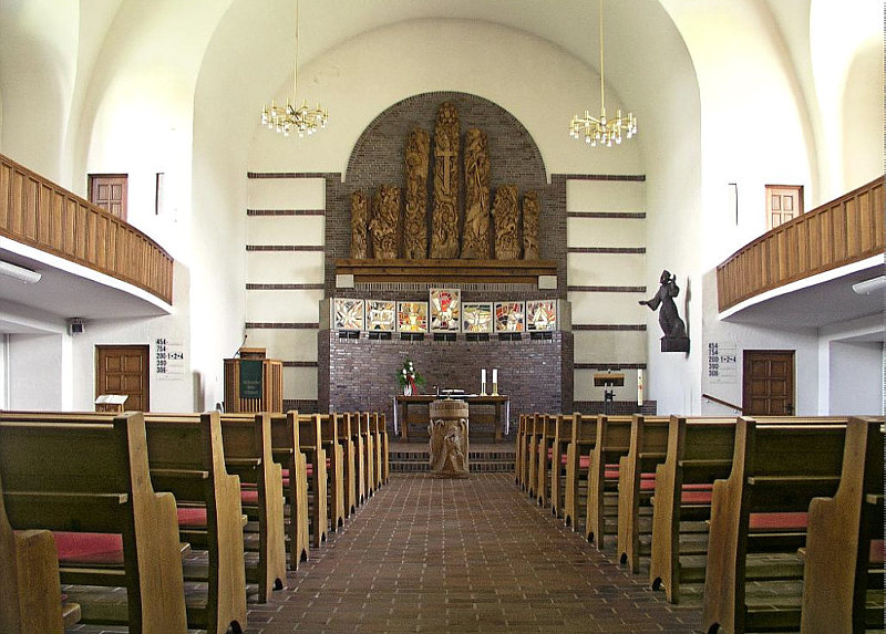 Wir sind in einer backsteinernen Saalkirche, der evangelischen