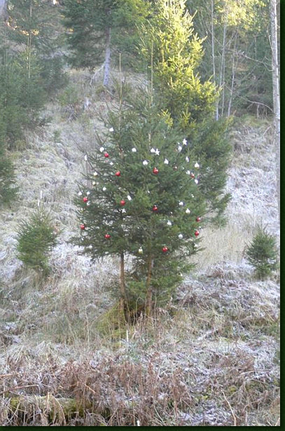 Heute zeige ich den Baum von rena ... sie schreibt: Und hier mein Tannenbaum – da ich ein Baumfan bin – fälle und kaufe ich nie einen Baum. Hier meiner mitten im Wald: morgens mittags weiter