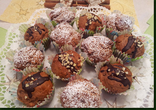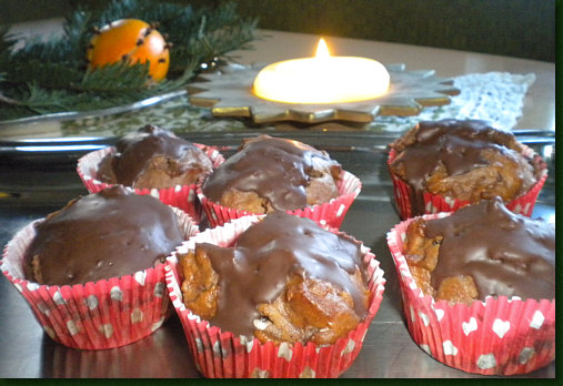 ... ich habe heute die weihnachtlichen Lebkuchen-Muffins gemacht.