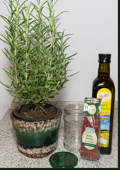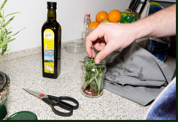 ... und er berührt den Rosmarin so liebevoll ... zusammen mit dem Öl ...
