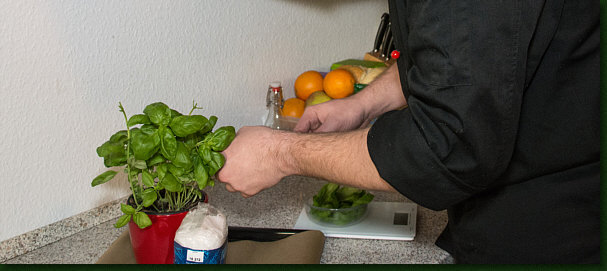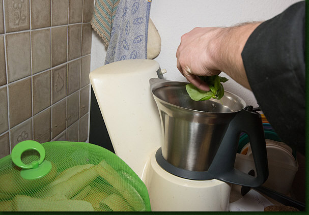 Basilikum waschen, die abgezupften Blättchen zusammen