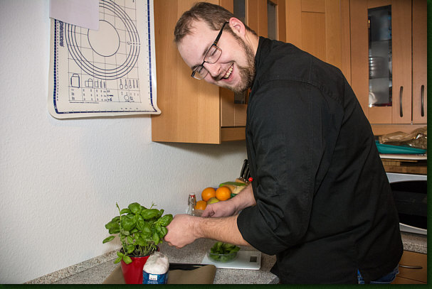 ... dann liebkost er den Basilikum.