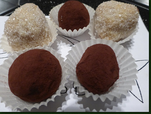 sie in Kakaopulver wälzen und im Kühlschrank aufbewahren.