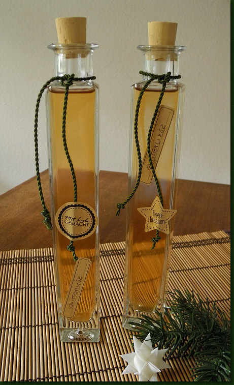 Danach den Alkohol zugeben und ca. 4 Wochen stehen lassen.
