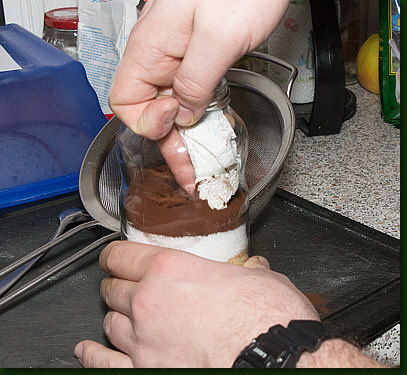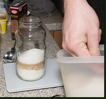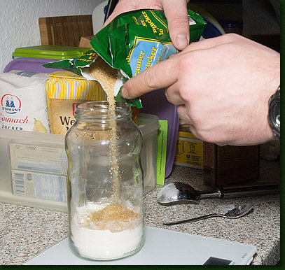Das Glas mit der Mischung in eine große Schüssel füllen