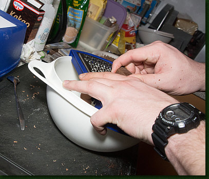 Mit den 90g Margarine und 1 Ei wurde das nix mit Teig, war eher Schokostreusel.