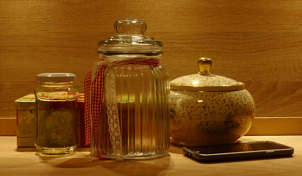 in ein Gefäß ... ein Glas, eine Dose, Schachtel, Box undsoweiter.