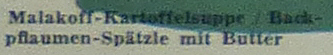 Malakoff-Kartoffelsuppe - Backpflaumen-Spätzle mit Butter
