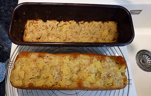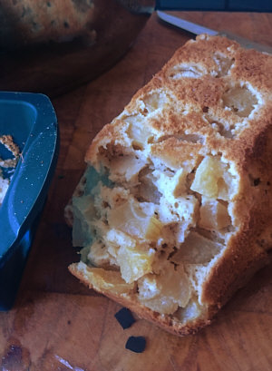 Äpfel unterheben und den Teig in eine gefettete Kastenform füllen.