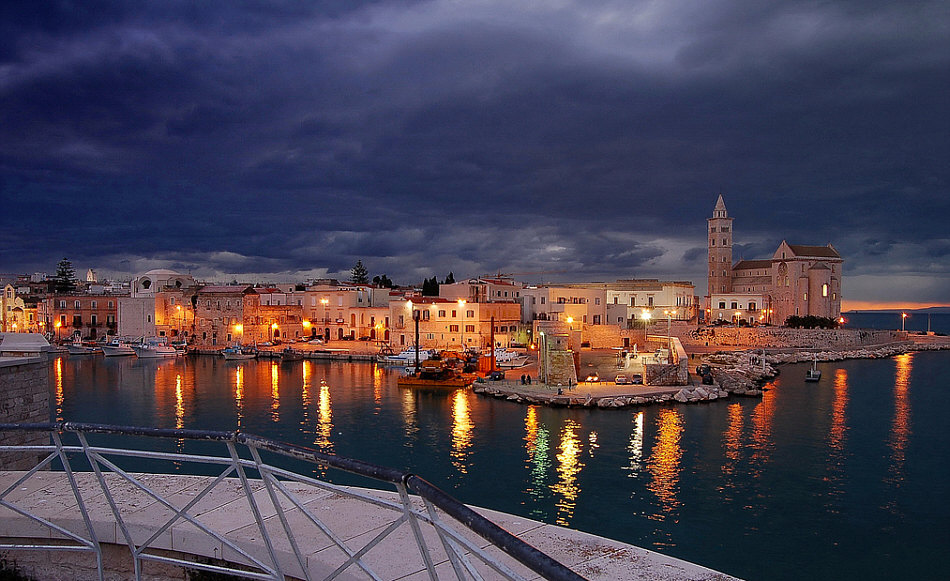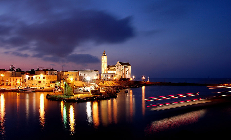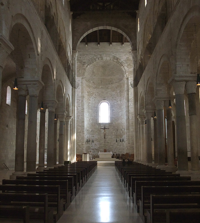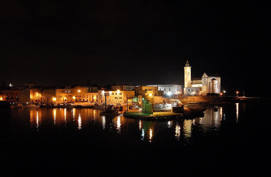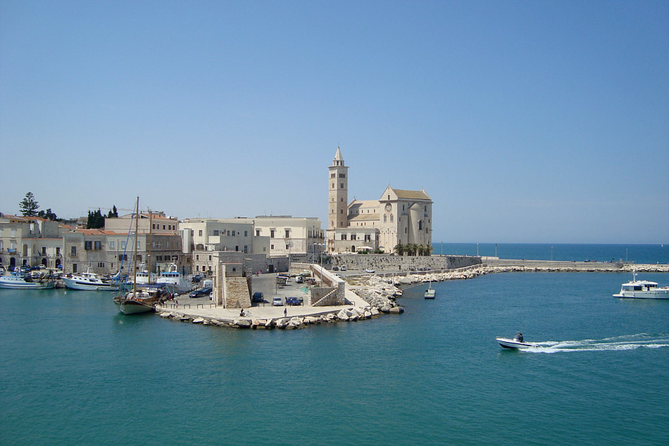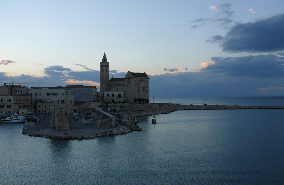 Willkommen in der Sonntagskirche von Seelenfarben: ![]() In die Stille dieses Kirchenraumes ... ... dringt eine leise Stimme: "hallo Du ... gleich kommen die Touristen ... bete noch zu Ende, lass noch Deine Andacht eins werden mit Deiner Seele ... und dann komm. Komm nach draußen ... denn nur wenige meiner Häuser haben eine so wunderbare Lage wie diese Kathedrale. Nun komm ... denn die Touristen sind schon da ... ![]() ... darum lass uns nach draußen gehen ... aber lass uns zuerst die Stadt kennen lernen": ![]() ![]() ![]() ![]() ![]() Es wird ein langer Abend ... es wird eine lichtvolle Nacht. Am nächsten Morgen gehen wir wieder durch die Stadt ... ![]() ... und dann gehen wir nochmals in die noch leere Kirche: ![]() Wir sind in der Kathedrale von Trani, einer süditalienischen Hafenstadt mit ca. 55.000 Einwohnern. Sie liegt in Apulien an der Adria. Weitere Infos zur Kirche gibt es hier. |
