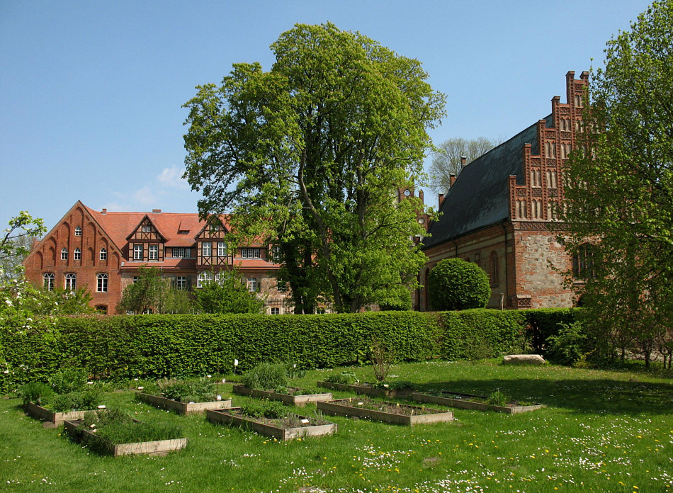 Such Dir etwas aus oder Entdecke die Möglichkeiten und/oder Mache eine kleine, abwechslungsreiche Reise Heute kann jeder nach seiner ganz eigenen Vorliebe einen Platz für sich finden. Oder Ihr lauft einfach mit mir mit und seht alles :). Wir starten im Kräutergarten ... ![]() ... und wir sehen gleich zwei Kirchen ... auch wenn es auf den ersten Blick gar nicht danach aussieht, doch hinter dem großen Baum ist noch eine Kirche zu finden ... ![]() Wir gehen mal hinter den Baum ... ![]() ... so sieht man das viel besser. Wir sind in einer Klosteranlage ... das hier ist der Westflügel des Klosters. Wir gehen nun in die Kirche ... ![]() ... eine schlichte einschiffige Stiftskirche ... wer mag, kann hier gerne ein wenig bleiben. Oder auch länger verweilen. Bis wir dann in die andere Kirche, die eine Kapelle ist, gehen: ![]() Das ist die "Heiliggrabkapelle", auch Blutkapelle genannt. Sie liegt in gedachter Fortsetzung der Kirche und ist ein Backsteinsaalbau, in den Mauern finden wir neben den Backsteinen auch behauene Feldsteine. Diese Kapelle ist der eigentliche Wallfahrtsort der Klosteranlage und wurde der Legende nach über einem Hinrichtungsplatz (Galgenberg) erbaut. Innen sieht die Kapelle ganz anders aus als die Kirche, in der wir eben waren. Sie wurde neugotisch neu gestaltet mit wandhohen Spitzbogennischen: ![]() Als 1986 eine Fußbodenheizung eingebaut wurde, fand man Reste eines Vorgängerbaus und auch ein nach Westen offenes Backsteingewölbe, das man als Heiliges Grab interpretiert. Wir können gerne mal nach vorne zum Chor gehen: ![]() Wir können hier in dieser Kapelle verweilen ... oder wieder in die Kirche gehen oder in den Kräutergarten ... oder auch in den Innenhof des Klosters: ![]() Vielleicht setzen wir uns auf den Rasen und lauschen der Stille oder den Vögeln. Vielleicht lesen wir auch erstmal im schönen Wikipedia weitere Infos über das Kloster. Wir sind im "Kloster Stift zum Heiligengrabe" im Ort Heiligengrabe (4400 Einwohner) im Landkreis Ostprignitz-Ruppin in Brandenburg, gut 100 Kilometer nordwestlich von Berlin. |