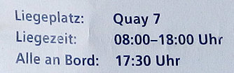 ![]() Willkommen zurück auf dem Schiff ... das wir schon bald verlassen werden. Denn wir arbeiten auf unseren ersten Landgang ![]() hin. Aber noch ist es Tag 2 - abends ... und das neue Faltblatt ist da. ![]() Aber keine Angst, das werden wir nicht wieder zwei Tage lang lesen ;)). Ich zeige Euch nur, was wichtig ist ... z.B. das Wetter, das ja sehr wichtig für einen Landgang ist: ![]() Waaahnsinn ... besser geht ja gar nicht. ![]() Morgens um 8 Uhr gehts also schon los und wir haben den ganzen Tag Zeit. Visby hat 23000 Einwohner und eine fast komplett erhaltene Stadtmauer. Und viele mittelalterliche Kaufmannshäuser, Kirchenruinen und den Dom. Visby ist sogar Teil des Weltkulturerbes ! Und heute, am Tag 3 ist auch noch Nationalfeiertag im Schweden. Aus diesem Anlass besucht eine gotländische Folkloregruppe gegen Abend das Schiff. Aber nun gehts erst mal vom Schiff runter ... auf ein anderes Schiff. Denn der Hafen von Visby ist nicht groß genug für die Aida, also werden die Landgänger und Schiffsflüchter mit Rettungsboten an Land gebracht. Zwei Boote fahren ... immer wenn ein paar Menschen mit wollen, gehts los. So hat man die Möglichkeit, während der ganzen Landgangszeit hin und her und hin und her zu fahren. Wir fahren erst mal hin. Zur Stadt. Das erste, was wir sehen, ist schon kaputt ... ![]() ... das ist die Kirchenruine St. Katrin. Teils sind einige Kirchen abgebrannt, weil sie im Krieg angezündet wurden. Das war schon vor 1600 ... und es gibt auch Kirchen, die wegen der Reformation aufgegeben wurden. Wir gehen weiter ... upps ... beinahe wären wir über Tier gestolpert. ![]() Wie ... das sind Steine ... oder Sitzgelegenheiten ? Nein, das sind Tiere ... guckt mal genau hin ... die machen "mäh!, bäh!, möh!", das sind nämlich drei Schafe. Okay, ja, sie sind arg kurz geschoren, deswegen verwirrt das etwas ;)). Jaaa ... und hier ist eines der historischen Häuser von Visby ... ![]() ... und wir sind jetzt schon ganz begeistert von der Stadt ... hier weitere Eindrücke von den Häusern: ![]() ![]() ![]() ![]() Visby ist ja umgeben von einer Stadtmauer ... die zu den besten und auch am vollständigsten erhaltenen Stadtbefestigungen in Europa gehört. ![]() ![]() Würde man an ihr entlang laufen, wäre der Weg dreieinhalb Kilometer lang. Dieses Prachtstück ... ![]() ... ist der Dom zu Visby. Natürlich gehn wir da mal rein: ![]() Wir laufen nun schon zwei Stunden ... und da passt das doch wunderbar, dass es zwischen den Ruinen ein Cafe gibt ... ![]() ... doch das ist leider geschlossen. Also laufen wir weiter ... ![]() ... zur Ruine der Kirche der Heiligen Dreifaltigkeit. Der Herr, der als Statue verewigt wurde, war Christopher Polhem, Wissenschaftler und Erfinder. Er gründete 1697 die erste schwedische Ingenieursschule ... für den Unterricht seiner Schüler schuf Polhem eine Sammlung von Holzmodellen, anhand derer verschiedene mechanische Bewegungsabläufe erklärt werden konnten, das so genannte "mechanische Alphabet". So ... nun isses 12.25 Uhr in Visby ... was machen wir denn nun Schönes ? Hmm ... das ist die große Frage ... denn wir haben das ein kleines Problem, dass vor einer Stunde noch ganz leise war, nun aber schon hörbar wird. Was da wohl los ist ? Das erfahren wir morgen ;)). [ wird fortgesetzt ] |