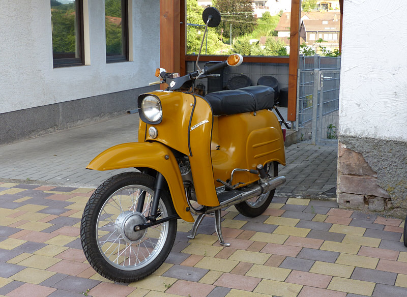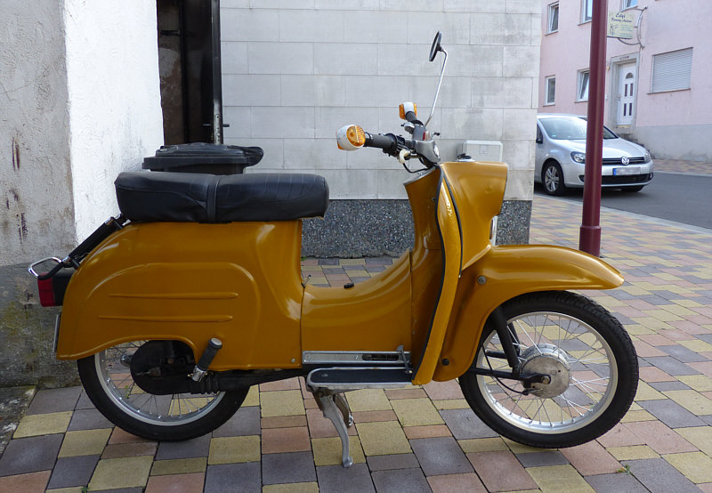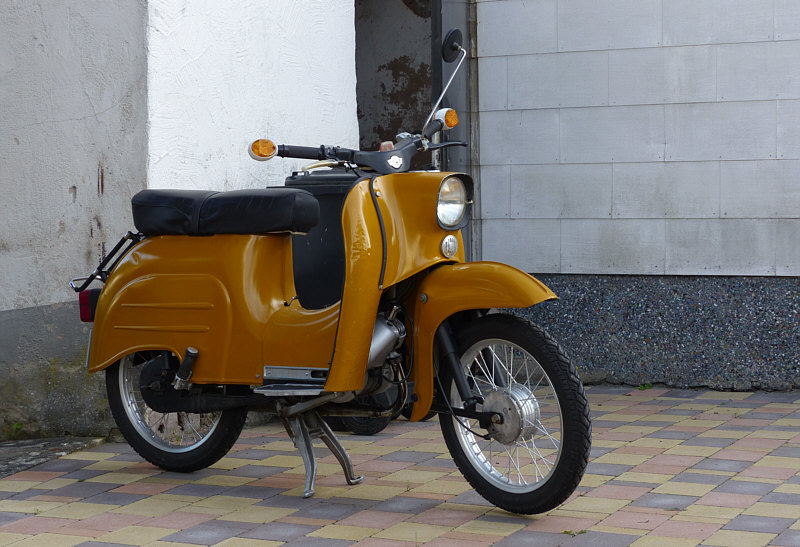 Ich habe dieses Kleinkraftrad bei einem Spaziergang gesehen ... ![]() ... es als Oldie eingestuft und mal geschaut, was das für eine Marke ist. ![]() Schwalbz ? Nie gehört ... ![]() ... Simson auch nicht. Aber das Internet weiß ja alles ... auch dass das nicht Schwalbz, sondern Schwalbe heißt und das ist der Modell- und nicht der Firmenname, denn der heißt Simson. Ich bin da also auf ein Stück Ostalgie getroffen. 22 Jahre lang wurde die Schwalbe gebaut ... von 1964 bis 1986. Produziert wurde in Suhl im Süden von Thüringen. Die Schwalbe kann in Deutschland trotz der Höchstgeschwindigkeit von 60 km/h als Kleinkraftrad mit einem Versicherungskennzeichen zulassungsfrei gefahren werden (Führerscheinklasse AM). Über eine Million Kleinkrafträder dieses Modells wurden gebaut ... ein in der damaligen DDR sehr beliebtes Gefährt ... nach 1990 wurde sie im Westen zum Kultfahrzeug, es gibt hier inzwischen einige Schwalbe-Fanclubs. Die Schwalbe ist so konstruiert, so dass die Räder ohne Probleme von vorne nach hinten gewechselt werden können und umgekehrt. ![]() ![]() ![]() ![]() ![]() Beim Nachlesen im Internet erfuhr ich, dass es kaum noch Tankstellen gibt, die Zapfstellen für Zweitakt-Kraftstoff (Benzin-Öl-Gemisch im Verhältnis 1:25 bzw. 1:50) anbieten, die Schwalbe aber in Ermangelung einer automatischen Öldosiereinrichtung nur gemischten Kraftstoff verarbeiten kann, und deswegen ist dann häufig Selbstmischung erforderlich. ![]() ![]() |