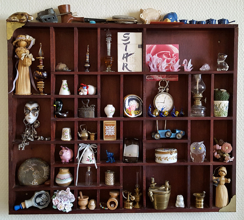 Wer hätte gedacht, dass die Seelenfärblerinnen so vielfältige Setzkästen haben ? Ich bin begeistert ... hier ist die Setzkasten-Galerie: Maggi ![]() ![]() Die weissen, runden Dinger im Katzensetzkasten sind die Pfotenabdrücke ihrer verstorbenen Katzen. Die Tierärztin nimmt den Abdruck von der eingeschläferten Katze und gibt den mit einer lieben Karte an die Besitzer. -- Mirjam ![]() Verschiedene Kostbarkeiten an Erinnerungen und Andenken. -- Brigitte C-B ![]() ![]() ![]() ![]() -- Adele ![]() Den Setzkasten hat ihr Schwager selbst gefertigt und ihr zum Geburtstag geschenkt. -- Satu ![]() Ein Setzkasten der etwas anderen Art und ausgesprochen praktisch. -- Hey ... ich sehe gerade, dass ich genug Setzkästen für zwei Kalenderblätter habe ... also gibts morgen Teil 2 :)). |