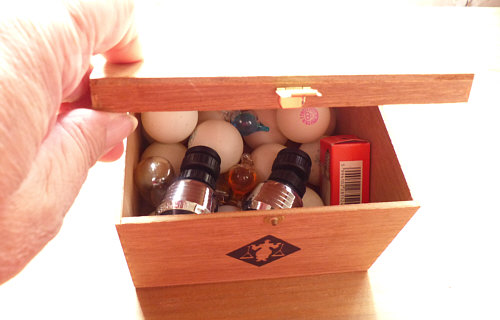 Und noch ein Schächtelchen, etwas aus Glas und etwas weißes rundes.