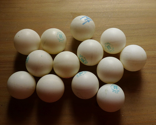 ... das sind wenig wertvolle Tischtennis-Übungsbälle.