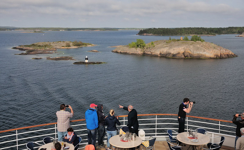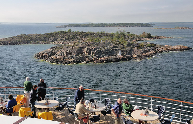 ![]() Tag 5 abends Nach dem wunderschönen Spaziergang an den alten Häusern von Mariehamn wird sie immer größer und größer ... ![]() ... unsere Heimat auf Zeit ... wo wir gleich wieder sein werden. Wie kommt es eigentlich, dass auf Elfis Bilder gar keine Menschenmassen zu sehen sind, wo doch ein Kreuzfahrtschiff da ist ... nun zum einen sind dort keine 2500 Passagiere wie bei den großen Schiffen drauf, sondern nur 1100 ... und zum anderen gehen die meisten Menschen mit einer Gruppe auf Landgang. Es werden ja verschiedene Möglichkeiten geboten, die man buchen kann und dann läuft jemand vorneweg und zeigt einem die schönen Dinge. Man kann sogar geführte gemeinsame Fahrradtouren buchen. Elfi und ihr Mann sind aber Individualisten und gehen meistens alleine auf Entdeckungsreise ... und von Mariehamn, das ja nicht sooo groß ist, haben wir jetzt auch so ziemlich alles gesehen. Das Schiff legt los ... und nette Menschen ... ![]() ... wünschen uns eine gute Weiterfahrt. Wir gehen an Deck und fahren wieder durch die wunderbare Schärenlandschaft mit vielen Inseln und Inselchen und auch Leuchttürmchen ... ![]() ... und genießen die Abendsonne hier in der Ostsee. ![]() das Fährschiff kommt wieder vorbei ... was für ein Bild ... ![]() ... mit den zwei grünumrahmten Felsen und dem Leuchtürmli. Ich hab ja das Prospekt in der Hand und würde gerne mal gucken, was man heute auf dem Schiff noch so machen kann ... ... aber wer kann denn diesen Augen widerstehen ... ![]() ... und so lege ich das Faltblatt weg und setze mich zu Elfi. Ich habe vor mir ein Schokoladenheíßgetränk. Setz Dich doch auch dazu ... wir verbringen den Abend mit Elfi auf Deck. Welches Getränk darf ich Dir bringen ? [ wird fortgesetzt ] |