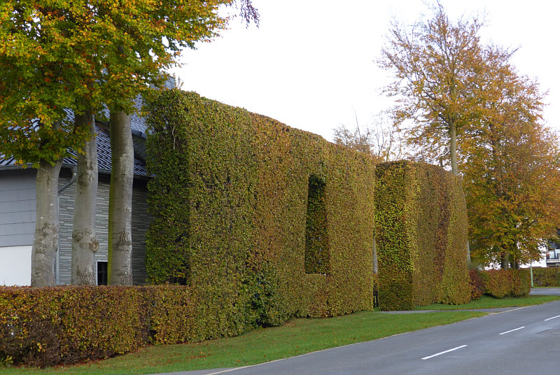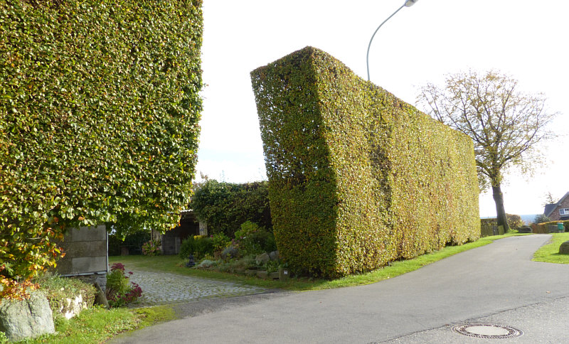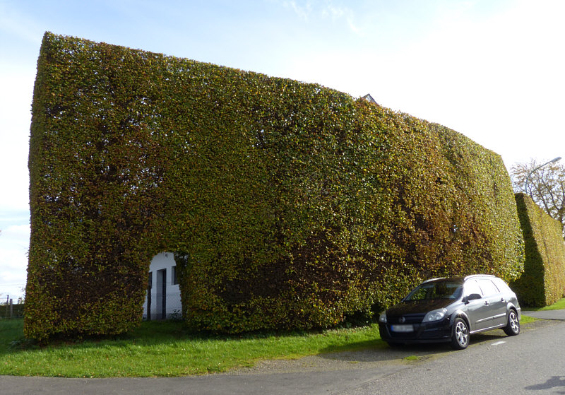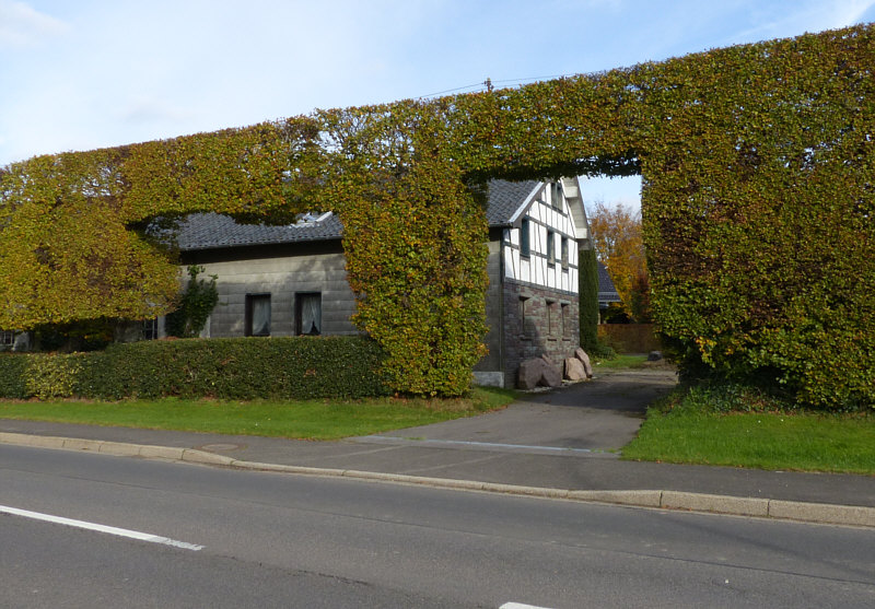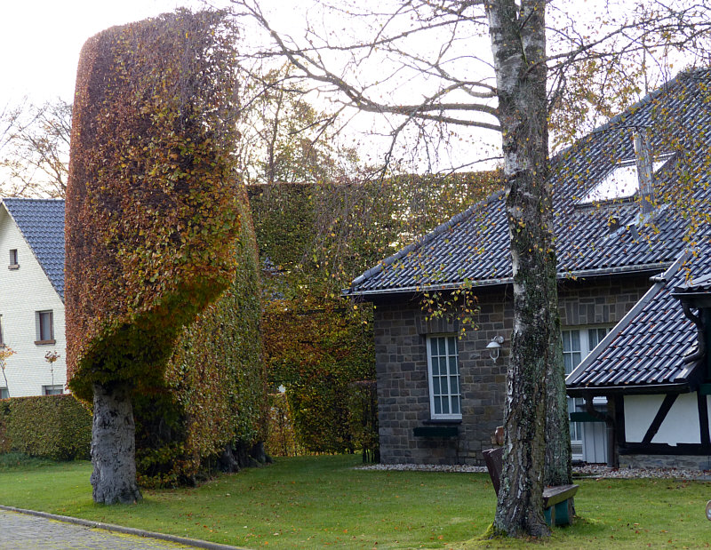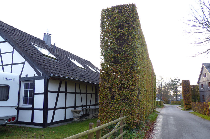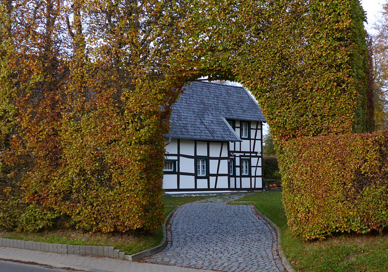 Ich muss nochmal kurz auf das Reetdachhaus zurückkommen ... ![]() ... auch das wäre sicherlich ein Grund, um eine gewissen Kilometeranzahl zu fahren, um es zu sehen. Aber dieses Dach war damals nur ein Zufallsfund ... der Grund, warum ich so weit (220 km einfache Strecke) gefahren bin, ist auch auf dem Bild zu sehen ... ![]() ... wegen solcher Hecken ist das passiert. Aber auch die Hecken waren ein "die auch noch sehen". Der Hauptgrund war dieses Bild in der Zeitschrift "liebes Land" ... ![]() ... das wollte ich genau so selbst fotografieren. Und wir haben uns auch sehr bemüht und auch einige Leute gefragt, um vermeintlich genau diese Stelle zu finden ... nur waren wir zu früh ... das Laub hatte sich noch nicht so gefärbt, aber das wussten wir bei der Abreise ja noch nicht ... das folgende Bild kommt am nächsten und dürfte auch in etwa diese Stelle sein: ![]() So hört dieser Weg auf ... ja, sind schöne Hecken ... ![]() ... aber es sind kleine Hecken gegenüber denen ein paar Meter weiter: ![]() Wir waren in einem Gebiet, wo noch eine Vielzahl von historischer Hecken stehen und ich zeige Euch jetzt mal ein paar Bilder, damit Ihr Euch das besser vorstellen könnt: ![]() ![]() ![]() ![]() ![]() ![]() ![]() Es gibt sie sogar mit Kurven ... ![]() ... und es gibt schöne Einblicke: ![]() Wir waren im Monschauer Heckenland (<-- klick zum Weiterlesen). Und nun habe ich noch einen Link und eine Überraschung ... ... das Reetdachhaus, dessen grüne Welt des Daches wir gestern gesehen haben, hat normalerweise zweimal im Jahr ihre Pforten geöffnet, so dass jeder da mal hin kann und selbst schauen. Weitere Infos gibt es auf Zauberflora. Man kann aber auch ohne Termin zumindest das Dach fotografieren, ich war ja auch im Oktober dort und durfte gerne in den Hof gehen zum Fotografieren. Zu finden in Höfen (ein Ortsteil von Monschau). |