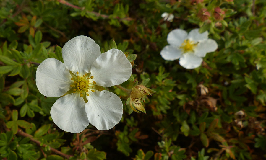 Diese Makroaufnahmen ... ![]() ![]() ... hatte ich vor einer Woche gezeigt ... heute könnt Ihr die ganze Blüte sehen: ![]() Eine Malve ... die hab ich auch in weiß: ![]() Oder gemischt ... ![]() Oder lieber eine Ringelblume ? ![]() Oder doch lieber noch mal weiß ... vielleicht eine Herbstanemone ? ![]() Oder etwas Weißes, das man eher selten als Hecke sieht ? ![]() Das ist eine Potentilla-Hecke ... auch Fingerstrauch genannt: ![]() Es blüht doch noch so einiges in diesen Tagen :)). Aber ich hab auch ein Bild für alle, die blütenlose Pflanzen lieben: ![]() Ein Spindelstrauch. Was blüht denn noch so in Deiner Umgebung ? |