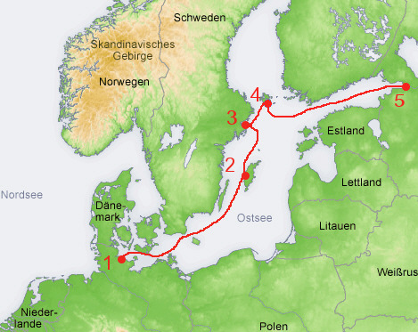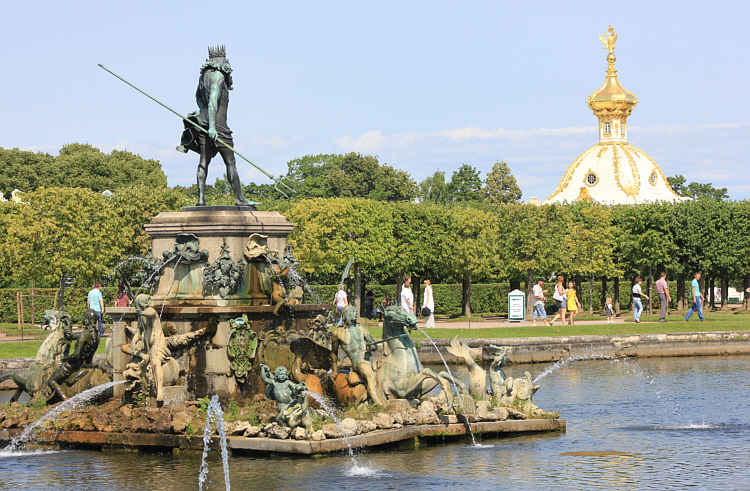![]() Tag 7 Gucken wir doch erst mal auf die Karte ... ![]() ... 1 war Kiel und Start, 2 war Visby auf Gotland, 3 Stockholm, 4 Mariehamn ... ... und dann sind wir wieder ziemlich weit in Richtung Osten gefahren und bei Nummer 5 in Sankt Petersburg gelandet. Schauen wir uns doch mal diesen Bereich ... ![]() ... näher an: ![]() Ganz bestimmt haben wir alle den "finnischen Meerbusen", so nennt sich diese Bucht, schon mal im Erdkundeunterricht gehört (hören müssen) ... obwohl es ja "der" Busen heißt, kann diese Bucht dennoch nur weiblich sein ... Männer haben ja keinen Busen ;)). Am Ende der Brust liegt St. Petersburg ... und 30 km weiter westlich ... ![]() ... da sind wir jetzt mit Bus und Tragflügelboot hingefahren. Den Erdkunde-Unterricht haben wir also nun hinter uns ... ... nun kommt der Geschichtsunterricht ... auwei, viel schlimmer noch ;)). Aber jedes Ding hat ja seinen Anfang und wir gucken mal, wie bei diesem roten Punkt alles begonnen und wo es hingeführt hat. 1709 Der Zar hat gegen die Schweden gewonnen und sagt "hurra, ich bau mir ein Schloss". 1714 Die Planungen für das Schloss beginnen "ich bau dir ein Schloss, so wie im Märchen, da will ich mit dir ..." ... . Zar Peter war lange auf Rundreise durch Europa und hat so ein paar optische und technische Ideen mitgebracht und arbeitet aktiv an der Planung mit. 1714-1723 "schaffe, schaffe, Häusle baue ... und net nach der Zarin schaue ...". 1723 Das Schloss heißt Peterhof und wird eingeweiht. Ein großes, aber dennoch schlichtes Schloss. Das noch nicht fertig ist ... was schon soweit steht, ist die goldene Kaskade, ein großer Teil des Parks, die zwei Lustschlösser im Park namens Monplaisir und Marly (letzteres eine Reminiszens an das Schloss Marly-le-Roi von Ludwig XIV) und der 400 Meter lange Kanal zur Ostsee. 1723-1725 Peter wohnt im Sommer im Schloss, welches ständig erweitert und verschönert wird. 1725 Peter wohnt nicht mehr im Schloss, er ist in den Himmel umgezogen. 1726-1730 Das Schloss steht leer. 1730 Zarin Anna lässt die Arbeiten in Schloss wieder aufnehmen. 1740 Neue Zarin, neues Glück ... auch Elisabeth lässt weiter bauen ... das Hauptgebäude wird verlängert und aufgestockt, es werden kurze Seitenflügel angefügt und es entstehen Pavillonbauten. Und auch eine Schloßkirche. 1752 Das gelbe Schloss mit weißen Dekorationen sieht in etwas so wie heute aus. 1753-1850 Immer wieder bauen die Zaren an diesem Schloss, ihrer Residenz. Und sie bewohnen das Schloss auch in unregelmäßigen Abständen immer wieder. Es gibt mittlerweile prächtige Paradezimmer (goldener Saal, Thronsaal) und ein mächtiges Treppenhaus, aber auch Wohnräume, wie z.B. das Schlafzimmer Peters des Großen. 1941 Die Deutschen kommen näher ... Museumsmitarbeiter versuchen, die meisten Kunstschätze zu evakuieren ... manche kamen nach Sankt Petersburg, andere gingen auf dem Transport verloren. 23.9.1941 Die Deutschen sind da ... abends schlägt ein Geschoss ein und der Palast fängt Feuer. 24.9.1941-19.1.1944 Das zerstörte Schloss Peterhof wird zum Stützpunkt umgebaut, Panzergräben werden durch die Parkanlage gezogen, es werden Minen gelegt und Stacheldraht ... es sollte ein planmäßig organisierter Kunstraub erfolgen, doch diverse andere Truppenteile hatten bereits viele Kunstobjekte geraubt. Derweilen wird das heutige Sankt Petersburg blockiert (Leningrader Blockade), da machen die deutschen, finnischen und spanischen Truppen mit. Man will die Bewohner der Stadt durch eine Blockade der Stadt verhungern lassen und man schafft das auch ... 1,1 Millionen Menschen ( 1100000 ) sterben. 1945 Es beginnen sofort die Aufräumarbeiten ... noch im Sommer diesen Jahres werden Teile des Unteren Garten nach dessen Rekonstruktion wieder für Besucher geöffnet. Die Museumsleitung beschließt, als erstes die Große Kaskade wieder aufzubauen. Etwas die Hälfte der Figuren haben den Krieg überstanden, große Skulpturen liegen im Park vergraben. Auch Adam und Eva wurden gefunden, die Zentralfigur des Samson ist bis heute verschollen und musste durch eine Kopie ersetzt werden. 1956 Das ... ![]() ... ist der Neptunbrunnen. Dieser wurde 1656 gebaut und stand ... in Nürnberg. Ein als Mahnmal für den Dreißigjährigen Krieg entworfener Barockbrunnen. 1797 kaufte Zar Paul I. der Stadt Nürnberg die Figuren des Brunnens ab und lässt sie zum Peterhof verschiffen und baut sie dort frontal vor dem großen Palast auf. Weil der Zeitgeschmack ein anderer war, wurden die Figuren neu arrangiert. 1895 ... Deutschland hätte gerne den Brunnen wieder, der Brunnen wird mittlerweile als wertvolles Zeugnis des deutschen Frühbarocks angesehen, doch die Verhandlungen des kaiserlichen Außenministerium über den Rückkauf scheiterten. Als nette Versöhnungsgeste gestattet der Zar aber die Abformung und so steht seit 1902 wieder ein Neptunbrunnen in Nürnberg. 1941 ... nun waren die Deutschen ja vor Ort ... und ... schwupps ... weg war er, der Brunnen. Denn er wurde als Kriegsbeute abgebaut, nach Nürnberg gebracht und dort im Paniersbunker eingelagert. 1945 ... weil ja manches Leid auch manche Freud beinhalten kann ... "weil" der Brunnen geklaut wurde, wurde er nicht durch den Artilleriebeschuss beim Rückzugsgefecht zerstört. Durchs Klauen hatten die Deutschen ihn also gerettet ... der Brunnen überstand den Krieg unbeschadet. 1947 wurde der Brunnen in den Originalkisten des Kunstraubs von 1942 nach Leningrad gebracht und dort erstmal eingelagert. Kontrolle der Teile ... eine Nereide (Nymphe) fehlt. In der Kiste, auf der Nereide steht, war ein erbeutetes Motorrad drin. 1956 ... nun wurde der Brunnen wieder im Schloss aufgebaut. 1957-heute Durch die ganzen Jahre gibt es Restaurierungsmaßnahmen, viele zerstörte Kunstwerke müssen mühevoll wieder rekonstruiert werden und immer wieder fehlte das Geld dafür. Viele Kunstschätze gelten bis heute verschollen. aktuell Der Palast ist ein Touristenmagnet, die sich am Palast, seinen Gärten, den Schlösschen im Park und d