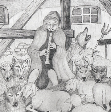 Einer der Wölfe war so ergriffen von der lieblichen Musik, dass er zu heulen