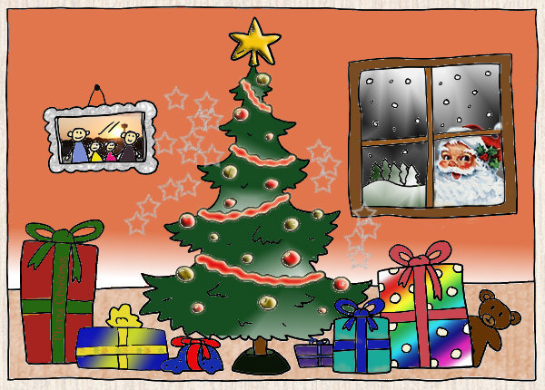 guckt sogar ein Weihnachtsmann zum Fenster rein.