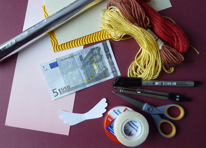 oder auch mit neutralem Papier, wenns nur Deko und nicht ein Geldgeschenk sein soll.