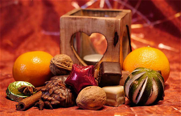 und mit Ruhe und Liebe betrachten ... die Mandarine, die Zimtstange, die Nuss,