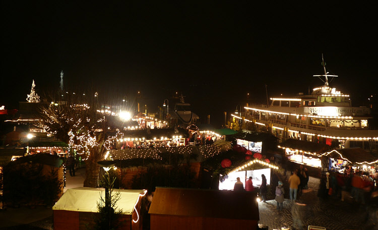 Teils liegen die Stände sogar am Seeuferweg und es gibt ein Weihnachtsschiff.
