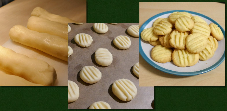 Von diesen Rollen werden gleichmäßige Stücke abgeschnitten (etwa 1 cm),