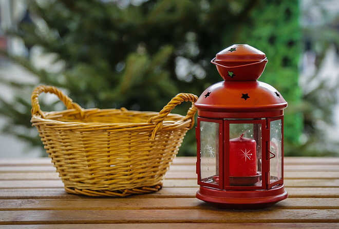 Wenn eine nicht angezündete Kerze neben einem leeren Korb ins Bild kommt,