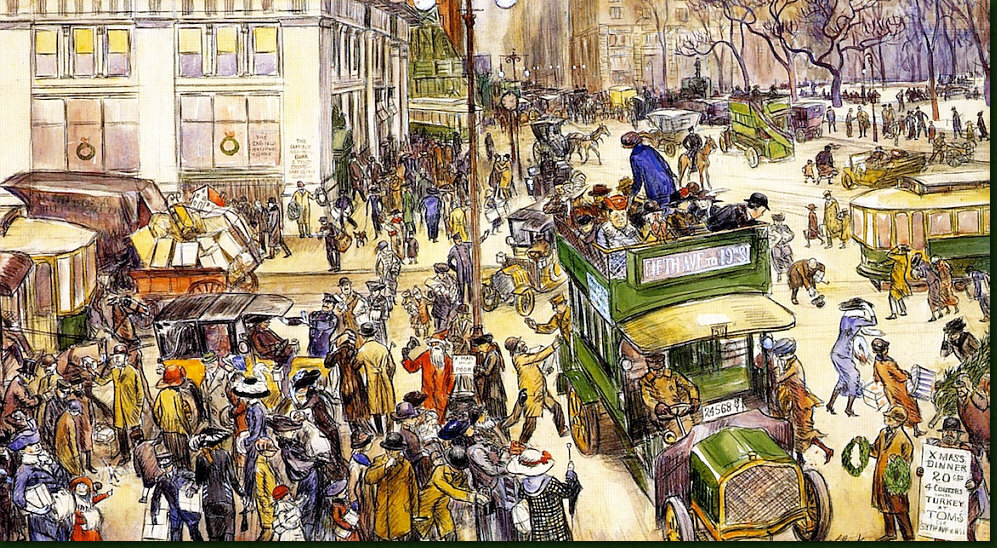 Das Bild hier zeigt das Jahr 1912 und nennt sich "Weihnachtseinkäufe in London"