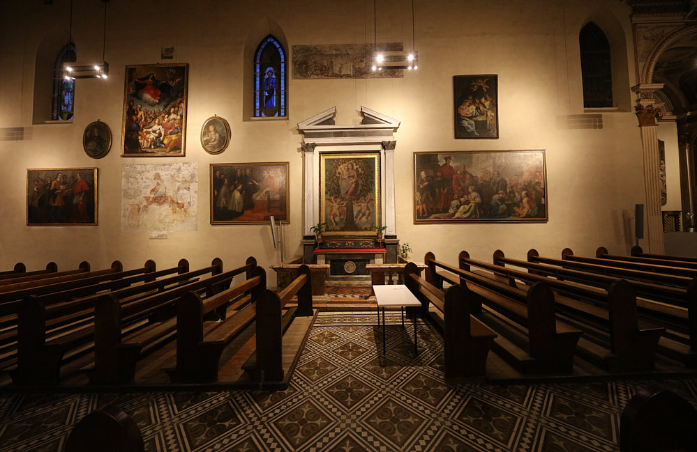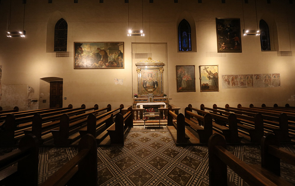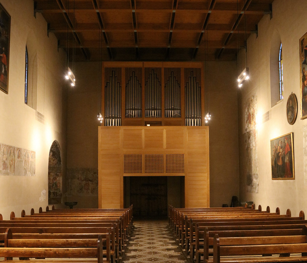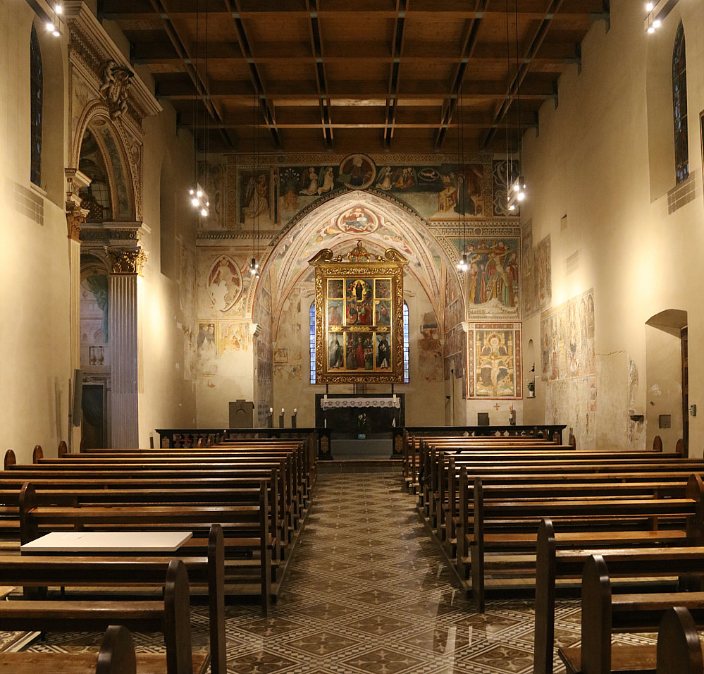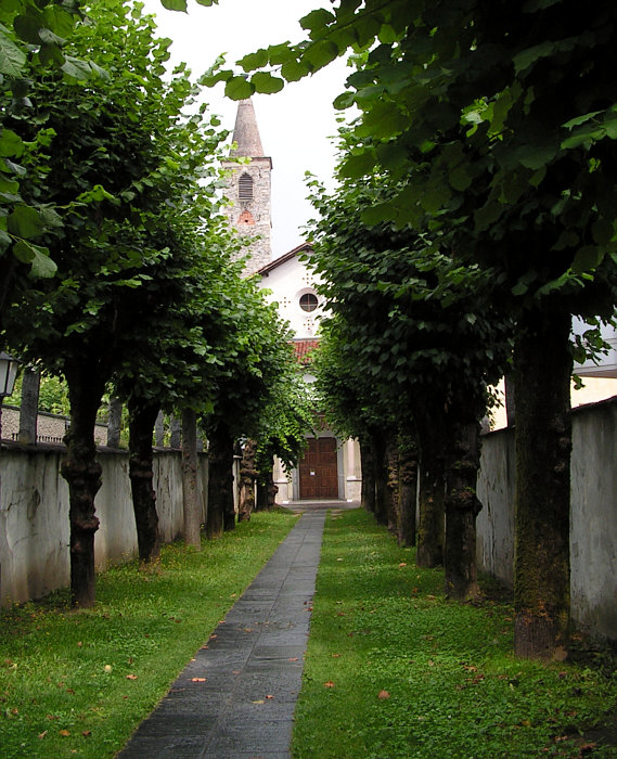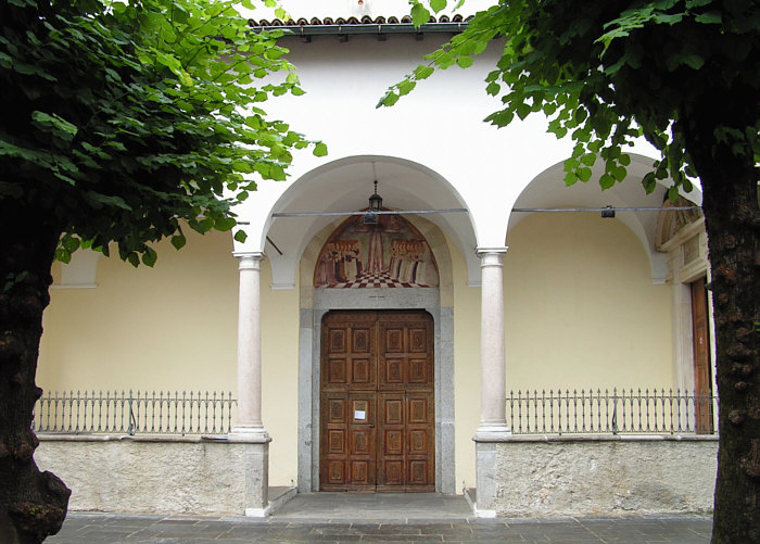 Wir gehen durch diese Lindenallee ... ![]() ... bis zu dieser Tür: ![]() Wir gehen allerdings da nicht hinein, sondern durch eine Seitentüre ... ... wir öffnen diese Türe und treten in den Raum ein: ![]() Unser Blick fällt nach links zur Orgel ... ![]() ... und nun blicken wir zu der Tür, durch die wir in die Kirche gegangen sind: ![]() Nun schauen wir nach links, denn da steht der Altar: ![]() Wir sehen einen umfangreichen Freskenzyklus der Spätgotik. Der Name der Kirche ist "Santa Maria della Misericordia", das klingt jetzt zwar nach Italien, aber dort sind wir nicht. Aber nicht weit davon entfernt, die italienische Grenze ist nur 10 Kilometer weit weg. Viel näher ist ein wunderbares Wasser ... wir laufen nur 5 Minuten und dann stehen wir am Ufer des Lago Maggiore, denn wir sind in Ascona in der Schweiz. Weitere Infos zur Kirche gibt es hier. Willkommen in der Sonntagskirche von Seelenfarben. Deine Gedanken zu diesem Kircheninnenraum ? |