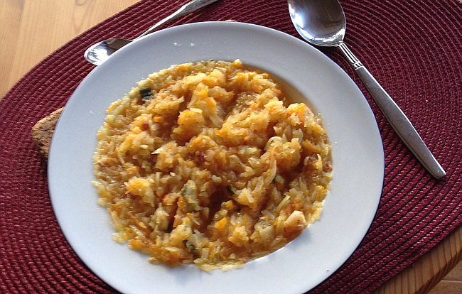 Die Steckrüben, Kartoffeln und Möhren raspele ich mit der