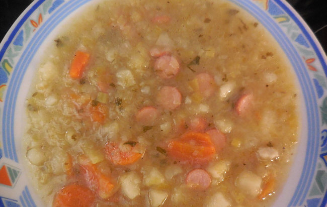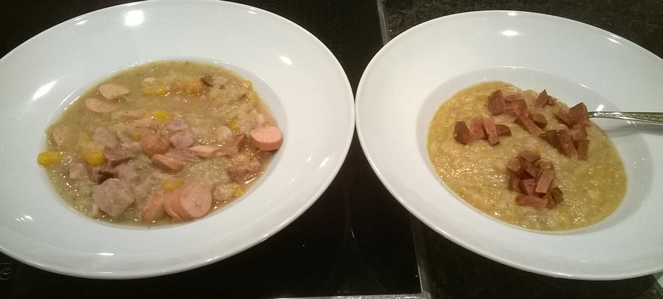 Für meinen Schatz gabs die Suppe stückig mit einem Paar Wiener Würstel.