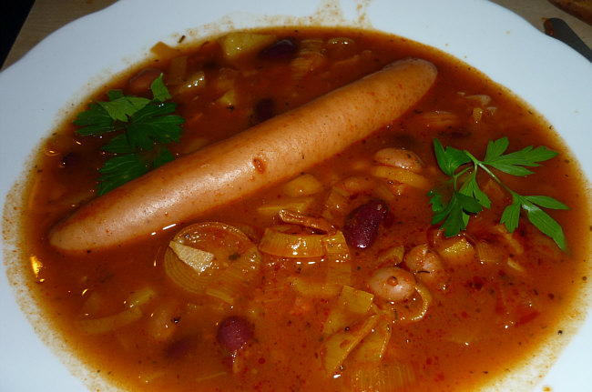 ... das ist eine Serbische Bohnensuppe mit Kindney- und Wachtelbohnen,