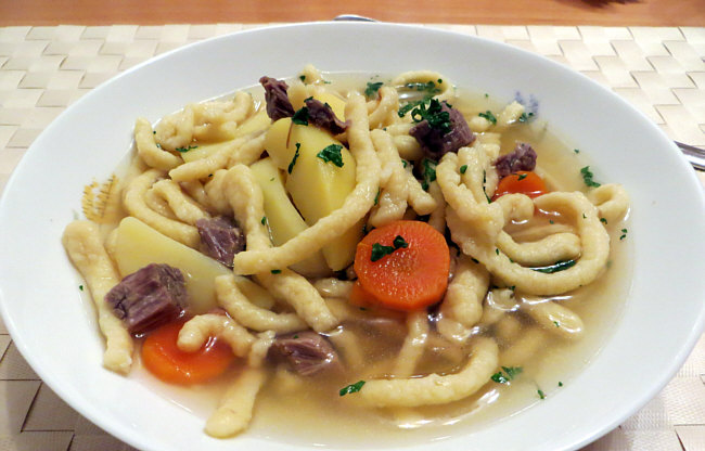 Wasser und den Markklößchen (Metzger), gewürzt mit selbstgemachtem