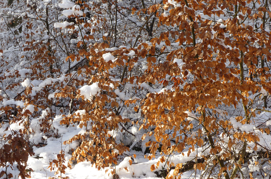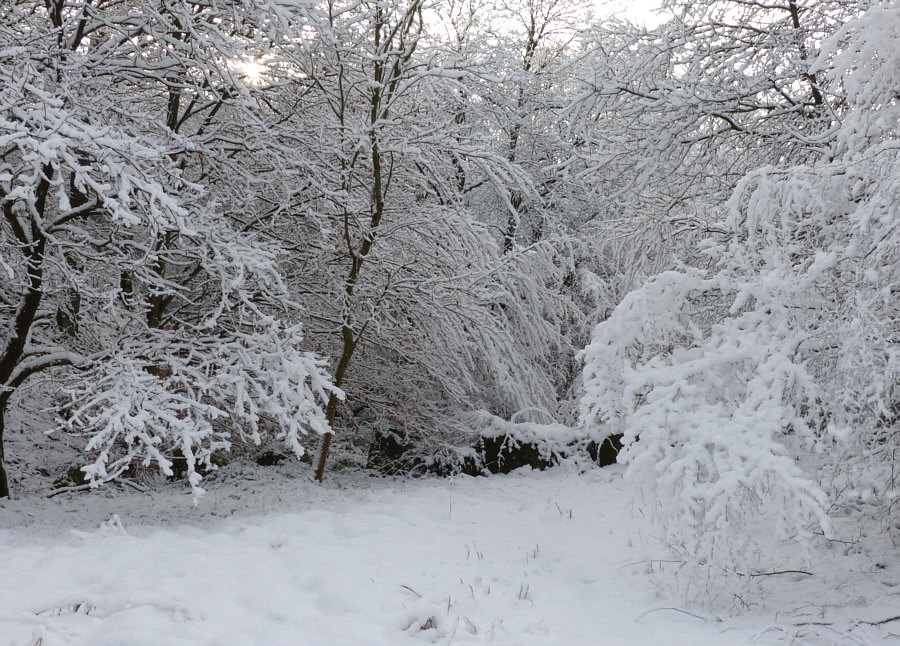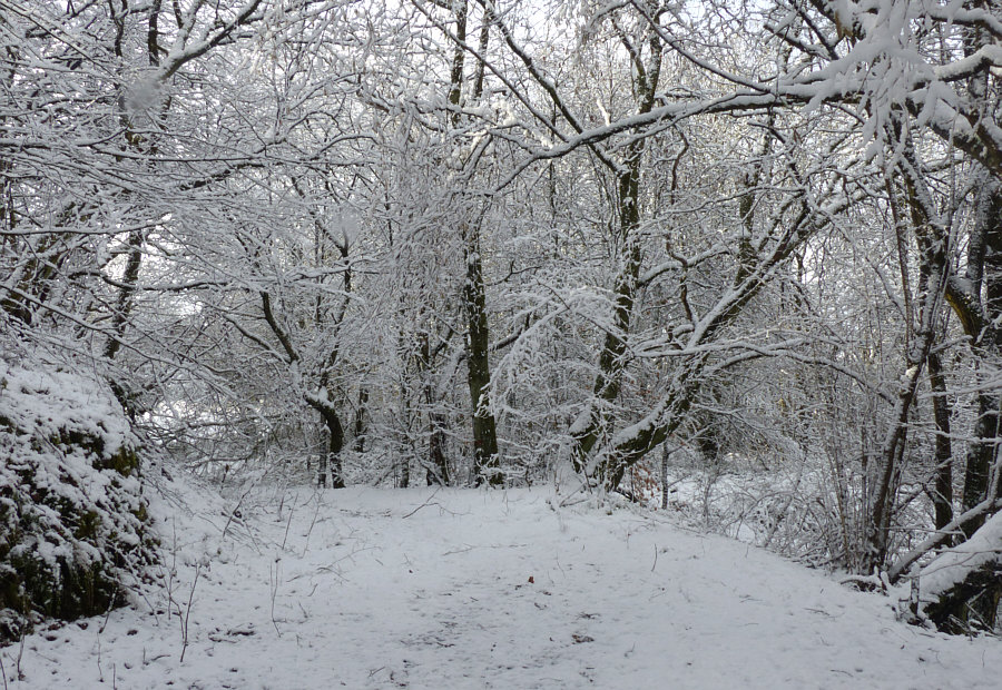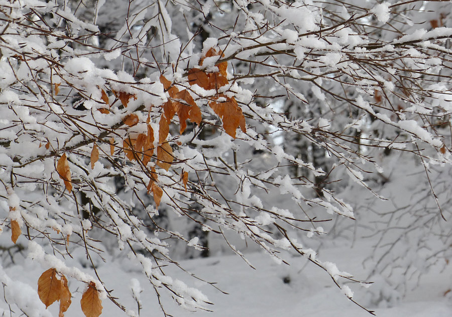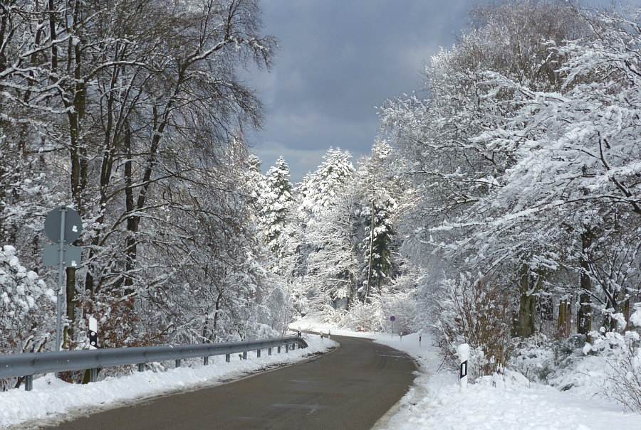 Gestern Morgen ... bei uns lag ein bisschen Schnee ... ... und ich weiß, wenn bei uns ein "bisschen" liegt, dann liegt weiter nördlich mehr. Also sind wir ganz einfach mal ganz spontan losgefahren ... Schnee gucken. Richtung Norden ... und wir haben auch schon bald welchen gefunden: ![]() ![]() Ich wusste, von wo aus man eine gute Aussicht hat ... also nichts wie hin zum Remigiusberg: ![]() ![]() Da oben auf dem Berg ist ein Lokal und eine Kirche ... und neben der Kirche blühen sogar ein paar Januar-Rosen: ![]() ![]() Blick in die Ferne ... ![]() ... hier sieht man schön die Temperaturunterschiede ... weiter unten ist es etwas milder, da liegt kein Schnee auf den Bäumen ... aber da oben ist alles weiß ... also war klar ... ich will da hin. Der Turm ist der Potzberg-Turm ... der Berg heißt natürlich Potzberg. Dort oben angekommen, sah es so aus: ![]() ![]() Traumhafter Winter da oben ... auf 562 Meter Höhe. Die Straße schön geräumt ... ![]() ... und hie und da gabs sogar ein Stück blauen Himmel. Und es gab einen wunderbaren Kontrast zwischen noch hängendem Buchenlaub und dem Schnee: ![]() ![]() ![]() War genau die richtige Idee gewesen, mal ganz spontan loszufahren. |