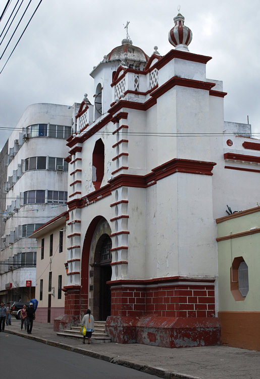 Ich habe ja die Sonntagskirche schon ein paar Mal mit einer Zufallszahl quasi ausgelost. Mal in Deutschland, auch in der Schweiz oder Österreich. Nun mache ich das mal weltweit ... denn es gibt ja auch den Zufallsbuchstaben, mit dem wir zuerst den ersten Buchstaben des Landes auslosen: H Lächel ... da gibt es nur Haiti und Honduras. Also Zufallszahl ... 2 ... also Honduras, ein Staat in Mittelamerika. Es gibt 46 Städte in Honduras ... und die Zahl sagt ... 7 ... das wäre die Stadt Choluteca. Über 100.000 Einwohner ... da gibt es bestimmt eine Menge Kirchen. Ganz bestimmt ... nur keine Bilder davon. Es gibt überhaupt kaum Bilder von Kirchen aus diesem Land. Da schaue ich einfach mal, ob ich wenigstens ein schönes Innenraumbild finde. Such such klick klick ... okay, es gibt genau ein von der Qualität geeignetes Bild einer Kirche. Die jetzt nicht in Choluteca steht, sondern in Comayaguela. Von außen sieht die "Iglesia de la Inmaculada Concepcion" so aus: ![]() Nun gehen wir mal in die Kirche hinein: ![]() Willkommen in der Sonntagskirche von Seelenfarben :)). Deine Gedanken zu diesem Kircheninnenraum ? |