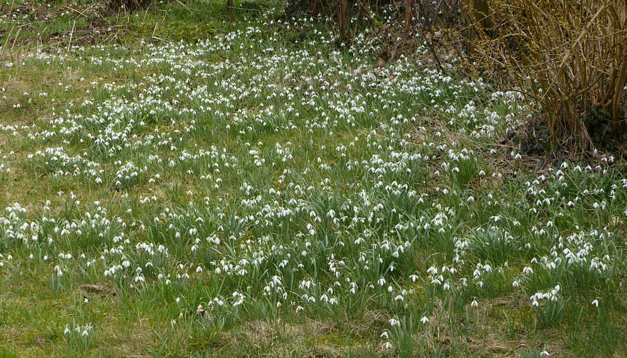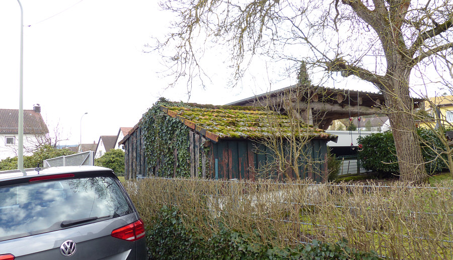 Spaziergang, Teil 3 Ein paar Tage später ... neuer Spaziergang bei angenehmen 10 Grad, was ich sehr genossen habe. Wir kommen an einem alten Schuppen vorbei ... ![]() ... und genau wie bei der gestrigen Mauer grünt es da auch. ![]() Auch hier eine wunderbare Urlandschaft ... ![]() ... mit Moos, Flechten und was so drauf gefallen ist. Diese Natürlichkeit gefällt auch dem Herrn da oben und so lässt er als Anerkennung noch ein Holzkreuz dazu fallen: ![]() Besonders interessant finde ich ja diese Lüftungsziegel ... ![]() ... die ich in dieser Form noch nie gesehen hatte ... auch so ein schönes Detail: ![]() Das nächste Bild ist ... ![]() ... ein "fotografierter Notizzettel", auf dem "nochmal wiederkommen, wenn der Rhododendron blüht" drauf steht. Ich habe ein paar solcher Notizzettel, die dann genau wie die Zettel auf dem Schreibtisch in Vergessenheit geraten. Aber Hauptsache aufgeschrieben, gelle ;)). Schön rund ... ![]() ... Glasbausteine gibts ja öfter, aber in rund eher selten ... und dann noch ein halbrunder Balkon dazu: ![]() Die Bemalung von diesem Haus ... ![]() ... gefiel uns so gut, dass ich geklingelt habe und fragte "wer hat ihr Haus so bemalt". Die Antwort "meine Frau". Meine Frage "würde ihre Frau ..." die Antwort "leider nein, meine Frau ist in Rente". Seufz. Nochmal seufz ... ![]() ... abgerissen und fallen gelassen ... du unintelligenter Hinterausgang du ... ... ähnlich in der Farbe, aber heile und an der Wand hängend ... der kleine Ostergruß: ![]() Neues Haus, neues Glück ... ![]() ... und große Tiere ... ![]() ... ob die jetzt massiv und sauschwer sind oder leichter Kunststoff ... keine Ahnung. Auf jeden Fall passt der Müll farblich gut dazu, ja fast eine ästhetische Symbiose. Zwei nackte Damen halten die Wasserschale ... ![]() ... und zwei Delfine spielen Spanner. Nun einer dieser naturbelassenen und sich selbst überlassenen Garten ... ganz zur Freude ... ![]() ... der vielen Schneeglöckchen: ![]() Richtig viele, die hier ganz ungestört wachsen dürfen ... ![]() ... leider scheint die Sonne nicht ... aber Schneeglöckchen lieben ja Schattenplätze. ![]() Noch ein fotografierter Notizzettel ... ![]() ... auf dem "nochmal kommen, wenn die Tulpen blühen" steht. Und dann dieses Haus ... ![]() ... und der Betrachter fragt sich "warum hat er dieses Haus fotografiert" ... ... na wegen der Autos natürlich: ![]() Campingurlaub mal anders ;)) Ich stelle fest, dass es heute mal Blümchen, aber weder Hund noch Katz zu sehen gibt ... ... das ändern wir aber ganz sicher in der nächsten Folge :). |