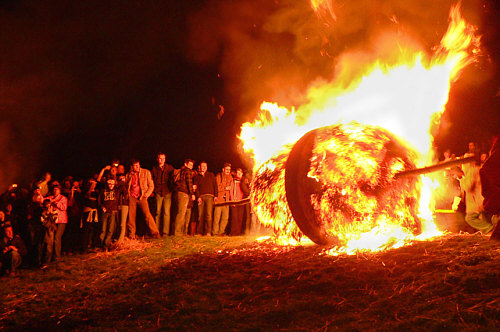 Die "Osterhexen" werden symbolisch am Osterfeuer verjagt.