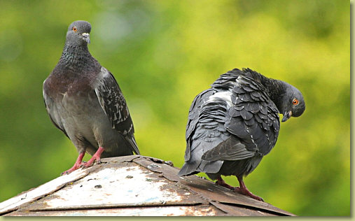 außer diesen Schreihälsen gibt es Tauben. Nicht zu knapp, wie ich