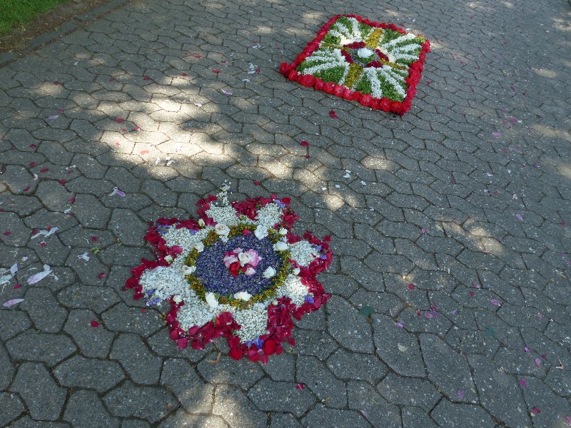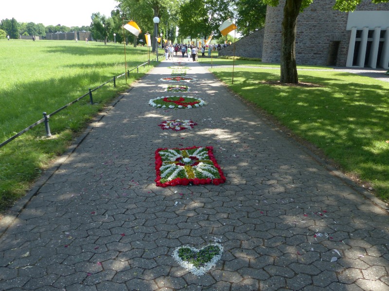 Vallendar ... das ist ein Fremdenverkehrsort am Rhein, 6 km nördlich von Koblenz. Schönstatt ist ein Stadtteil von Vallendar ... hier wurde 1914 die Schönstattbewegung begründet. Das ist eine internationale geistliche Erneuerungsbewegung und eine Vereinigung von Gläubigen in der katholischen Kirche mit apostolischer Ausrichtung. Das Ziel des Gründers Josef Kentenich war es, der Kirche und dem Glauben der Christen ein neues, modernes Gesicht zu geben. Schönstatt kann als Vision Kentenichs verstanden werden, wie die Kirche in Zukunft aussehen könnte, wenn sie sich organisatorisch weiterentwickeln und weiterhin Menschen zu Jesus Christus führen will. Das nur am Rande ... es geht darum, was es vorgestern in Schönstatt zu sehen gab. Denn, um den Pfarrgemeinden keine Konkurrenz zu machen, wird das Fronleichnamsfest in Schönstatt traditionell am Sonntag nach Fronleichnam, in diesem Jahr am 3. Juni, gefeiert. In jedem Jahr sind erneut Blumenteppiche bei der Fronleichnamsprozession auf Berg Schönstatt eine Attraktion. Mehr als 1500 Besucher werden erwartet, die Berg Schönstatt in großer Blumenpracht erleben. Es sind Pilger aus aller Welt dabei, auch Tageswallfahrer aus vielen Gegenden Deutschlands. Beinahe wäre ich selbst hingefahren, um mir die Blumenteppiche anzuschauen ... ... aber auch so kann ich (und Ihr alle natürlich auch) dabei sein, denn widder49 war dort und hat Bilder gemacht, damit wir alle diesem besonderen Ereignis beiwohnen können. ![]() ![]() ![]() ![]() ![]() ![]() ![]() ![]() ![]() ![]() ![]() ![]() ![]() ![]() ![]() ![]() ![]() ![]() ![]() ![]() ![]() ![]() ![]() ![]() ![]() ![]() ![]() ![]() ![]() ![]() |