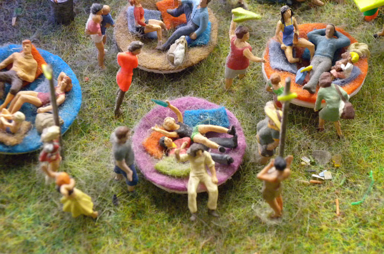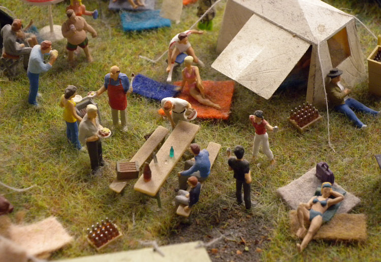 Bierzeltgarnitur Gras Grill Spaghetti Getränke Siesta Eis Freizeit Entspannung Freude genießen Zelte Sonnenschirm Menschen Toilettenhäuschen Wo sind wir ??