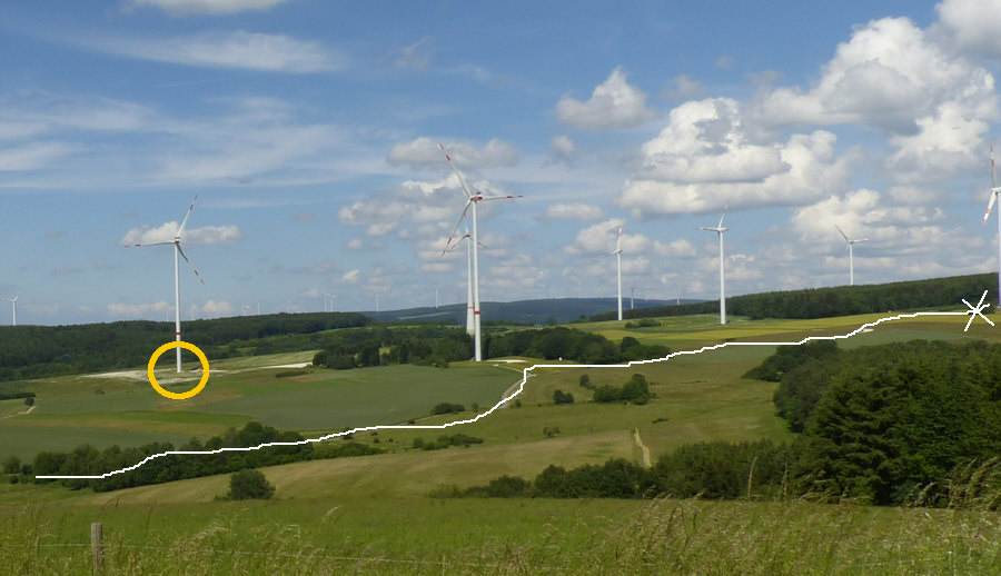 Zu dem Windrad im Kreis wollten wir ... und die weiße Strecke sind wir