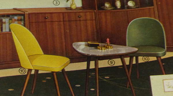 Umgerechneter Preis heute: Stuhl, 350, Tisch 275, Anrichte 900 Euro